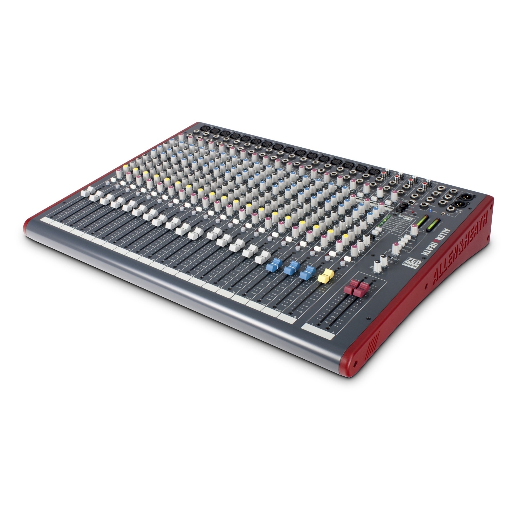 La ZED 22FX es una consola análogica con un total de 22 canales (16 mono, 3 estéreo) que ofrece una gran cantidad de conectividad, junto con 3 auxiliares, 1 envío de efectos y un total de 16 efectos integrados. Es ideal para mezclas en vivo, grabación de track estéreo en vivo y multipista mediante USB.